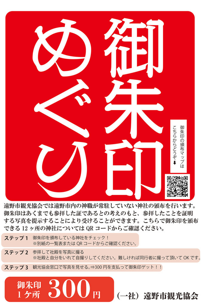 遠野市観光協会では、遠野市内の神職が常駐していない神社の御朱印の頒布を行っています。