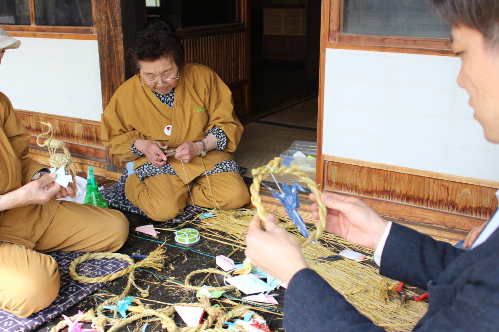この体験では、遠野で長く生活をし、なわをなうことが日常だった地域の方が直接指導をします。